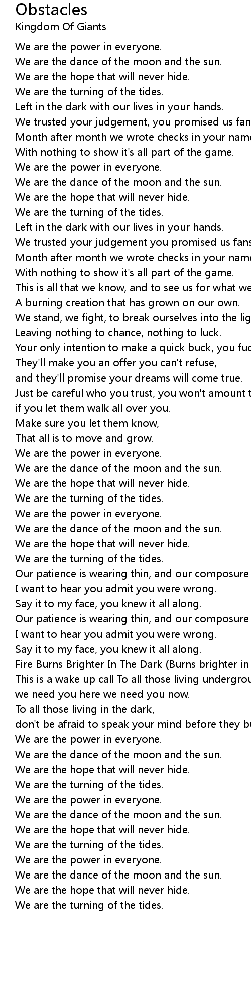 We stand, we fight, to break ourselves into the light. |