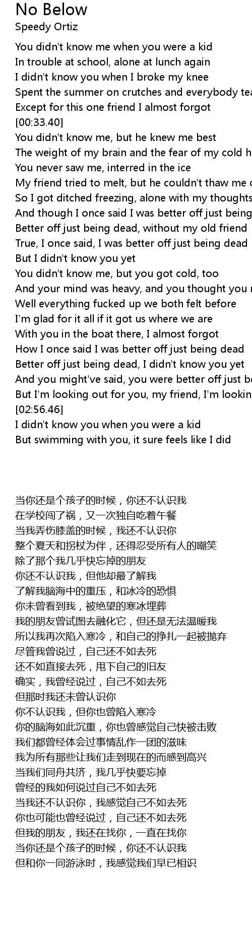 Better off just being dead, I didn't know you yet |