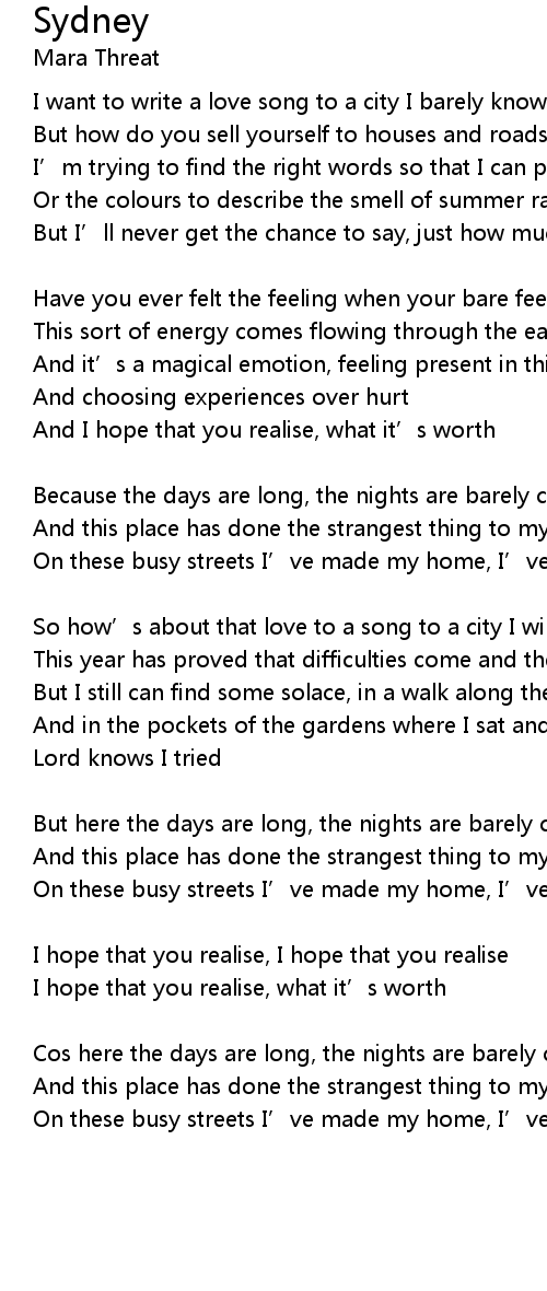 | Song | Sydney |