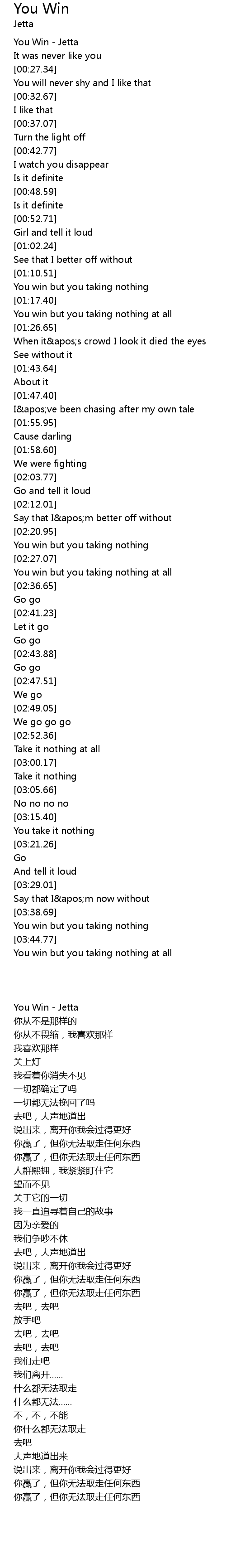 You Win - Jetta |
