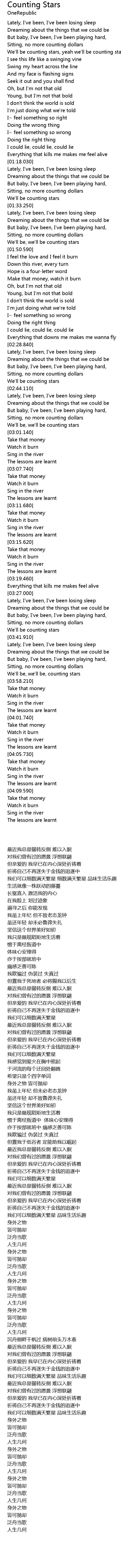 Counting Stars Lyrics