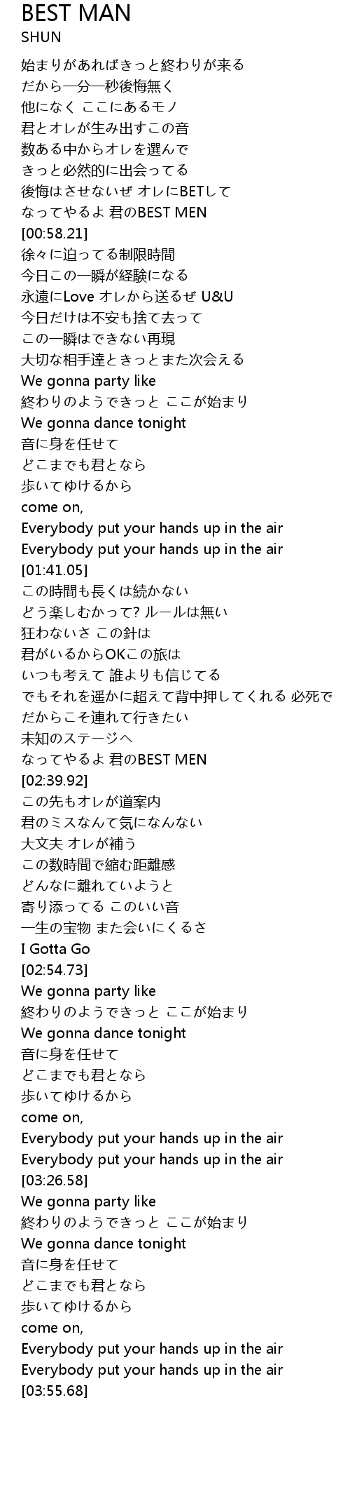 | [00:40.32] | なってやるよ 君のBEST MEN |