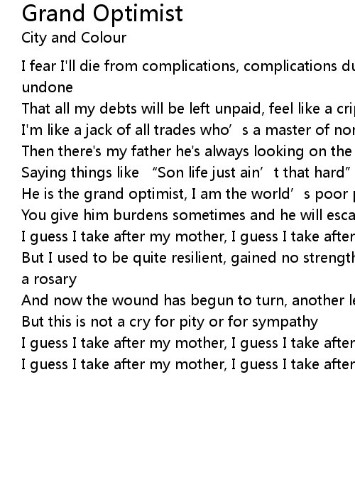 | Song | Grand Optimist |