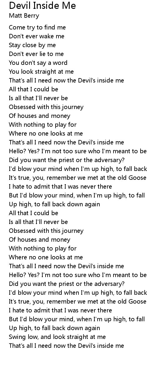 That's all I need now the Devil's inside me |
