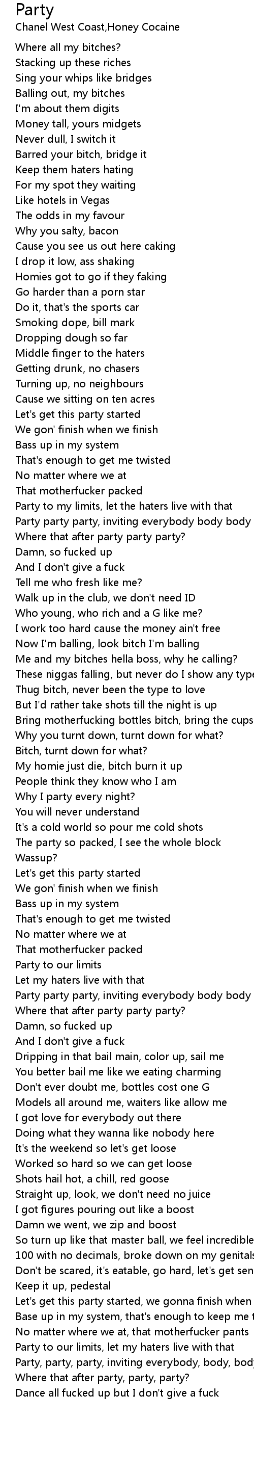 Bring motherfucking bottles bitch, bring the cups |