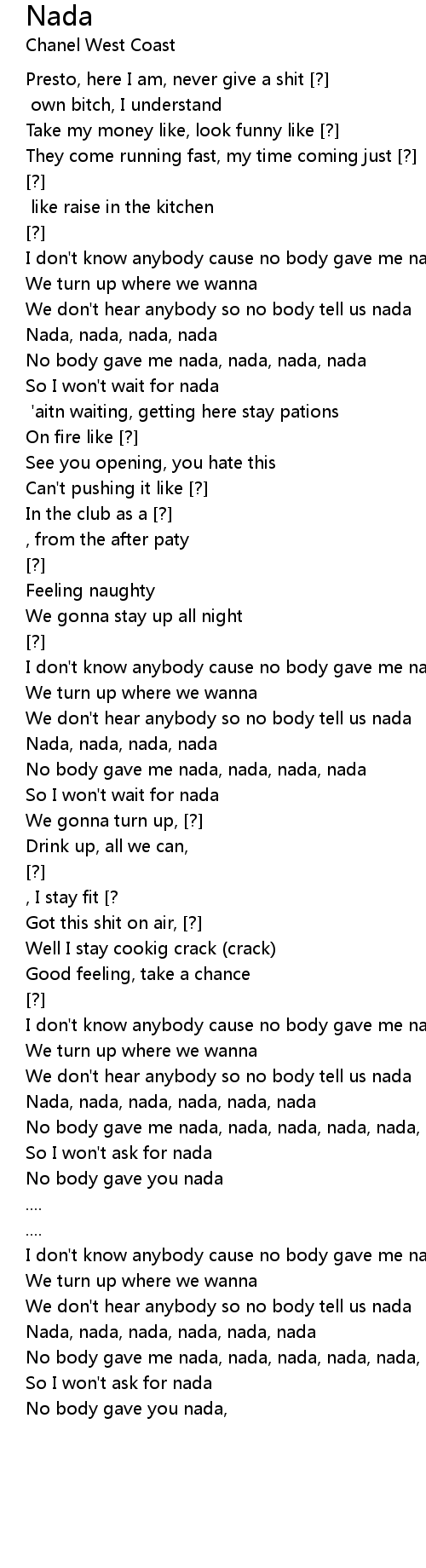 No body gave me nada, nada, nada, nada, nada, nada, nada |