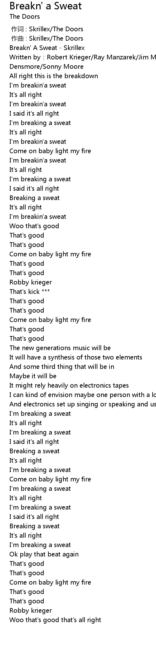 | [00:00.000] | 作词 : Skrillex/The Doors |