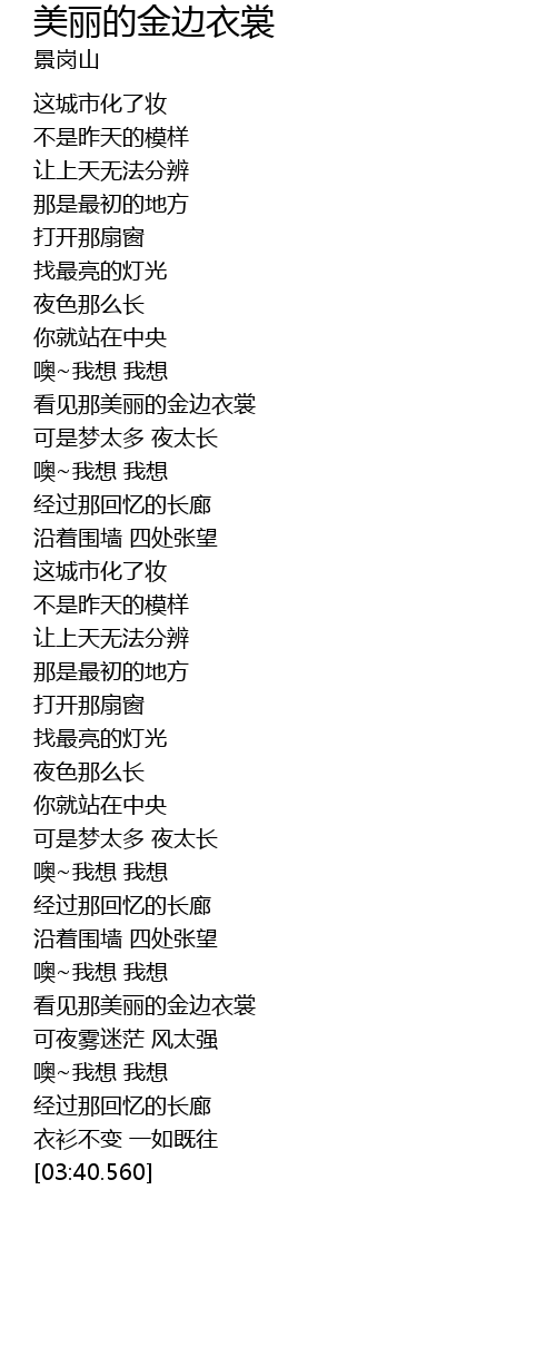 | [03:11.560] | 看见那美丽的金边衣裳 |