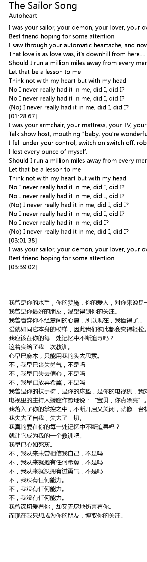 | [03:24.74] | I was your sailor, your demon, your lover, your overbearing |