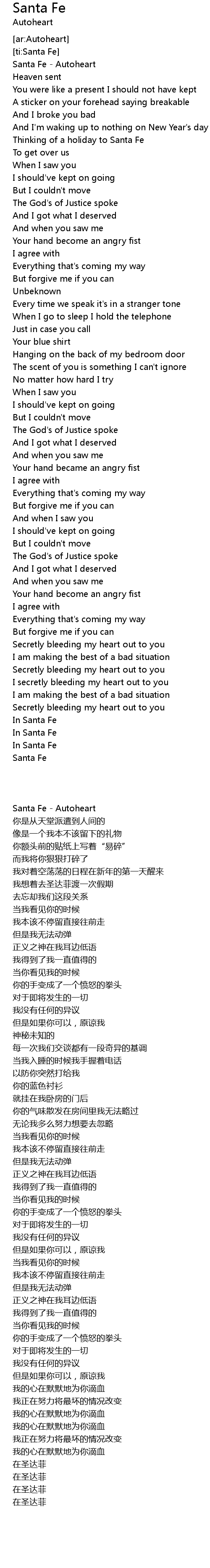 | [00:28.38] | Thinking of a holiday to Santa Fe |