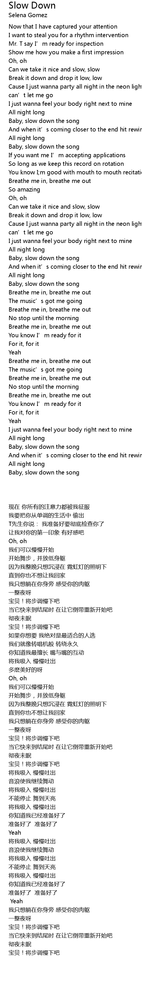| [00:51.910] | Baby, slow down the song |