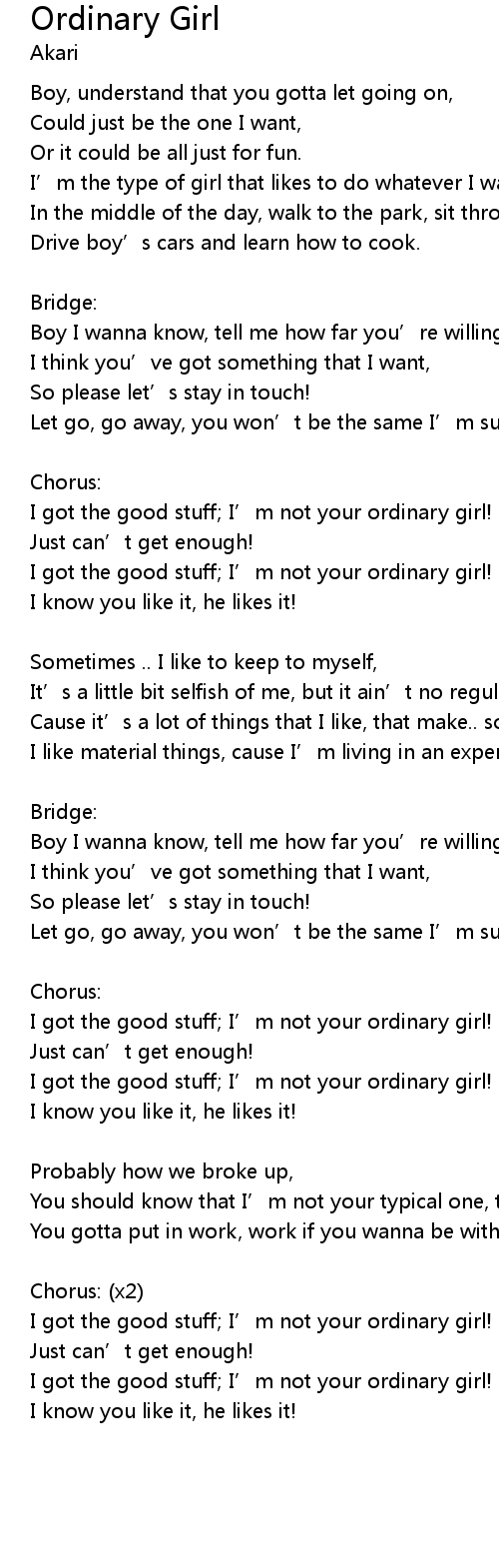 | I got the good stuff I' m not your ordinary girl! | |