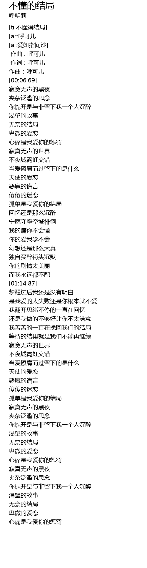 | [01:38.99] | 我苦苦的一直在挽回我们的结局 |