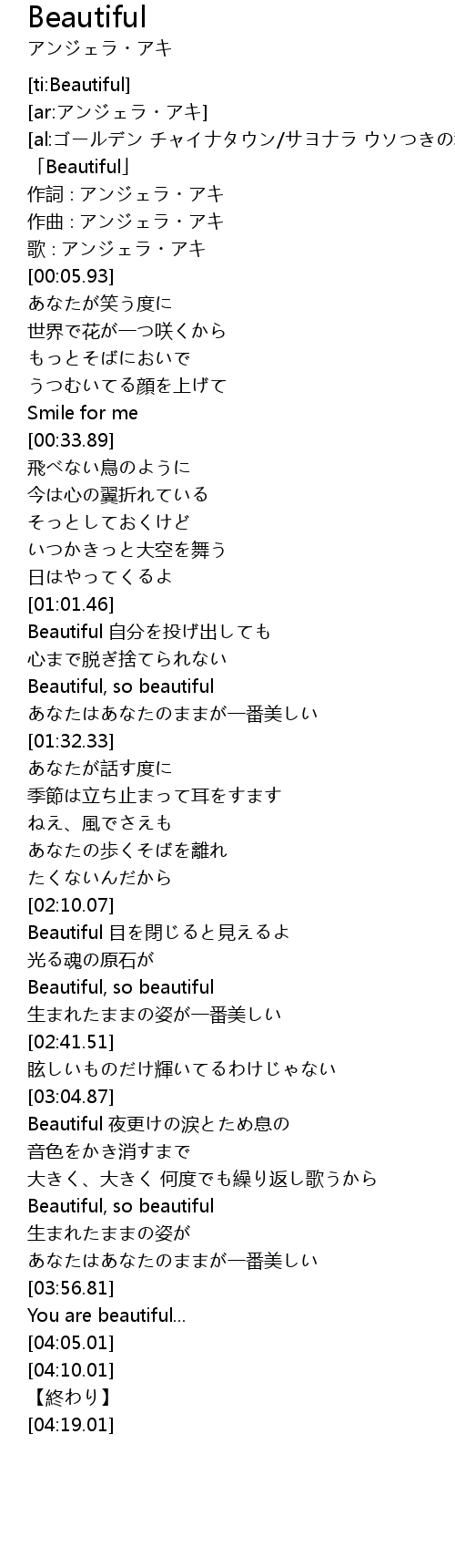 | [00:03.93] | 作曲∶アンジェラ・アキ |