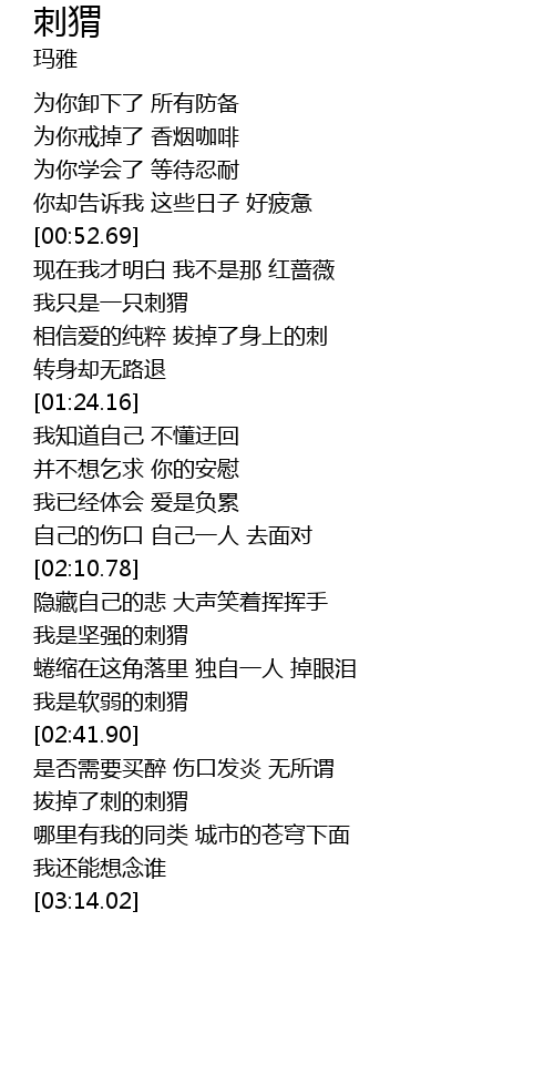 | [02:52.28] | 拔掉了刺的刺猬 |