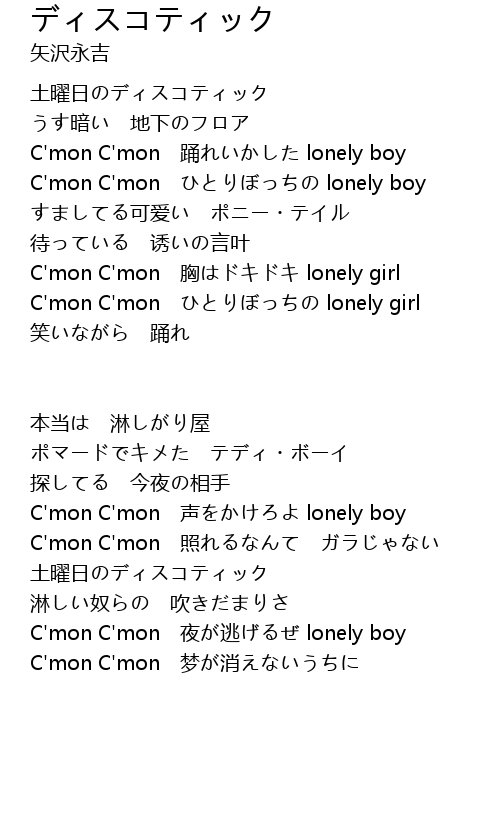 | C' mon C' mon yǒng lonely boy | |