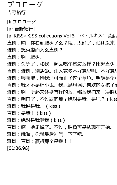 | [01:19.26] | 雅树:绝对是我啊我(kiss) |