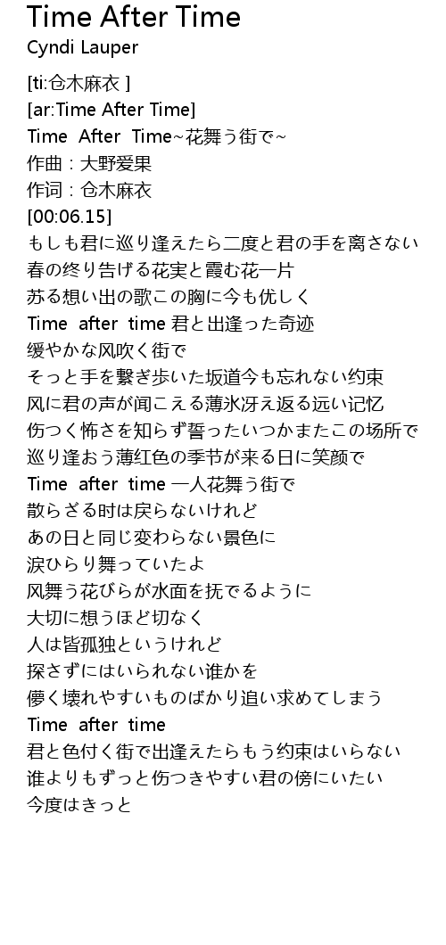 | [00:00.44] | Time After Time~花舞う街で~ |
