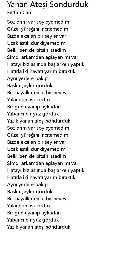 Yanan Ateşi Söndürdük Yanan Ate i S ndü rdü k Lyrics