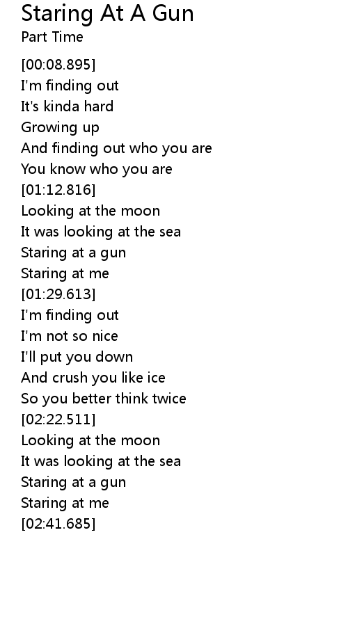 | [02:31.837] | Staring at a gun |