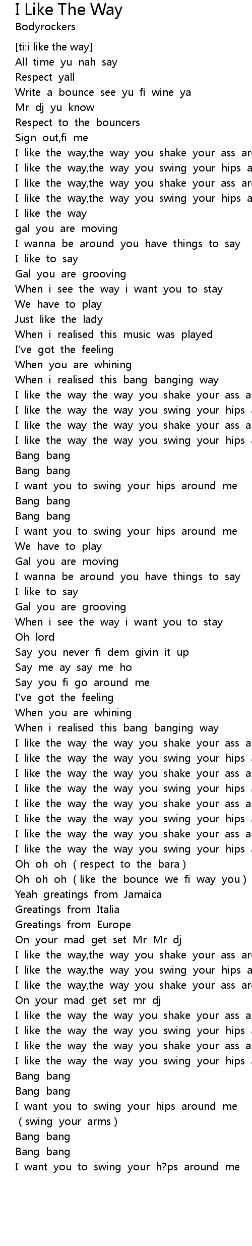 | [02:41.945] | I like the way,the way you shake your ass around me |