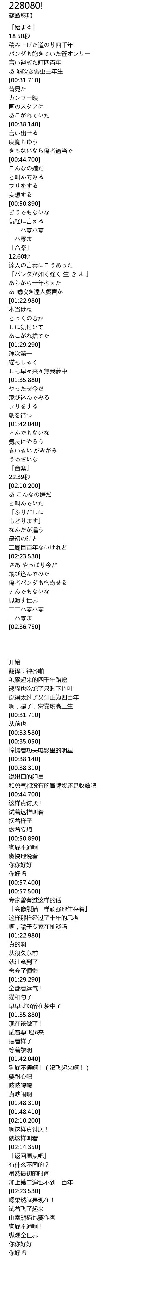| [01:13.500] | 「パンダが如く強く 生 き よ 」 |