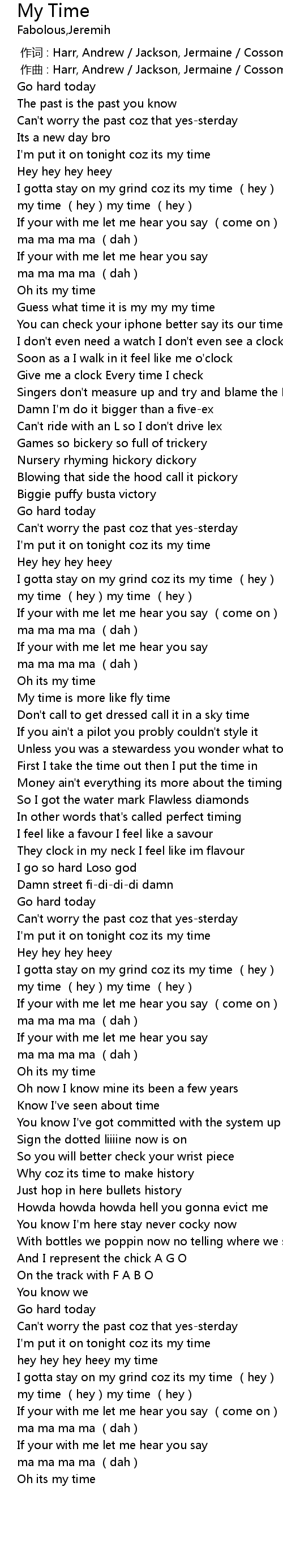 | [03:36.751] | I gotta stay on my grind coz its my time (hey) |