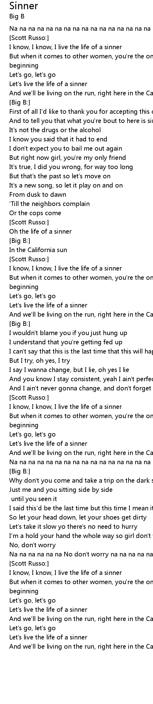 Sinner Lyrics