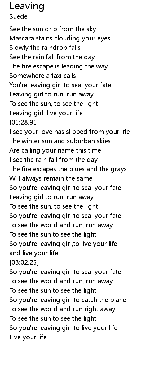 So you're leaving girl,to live your life |