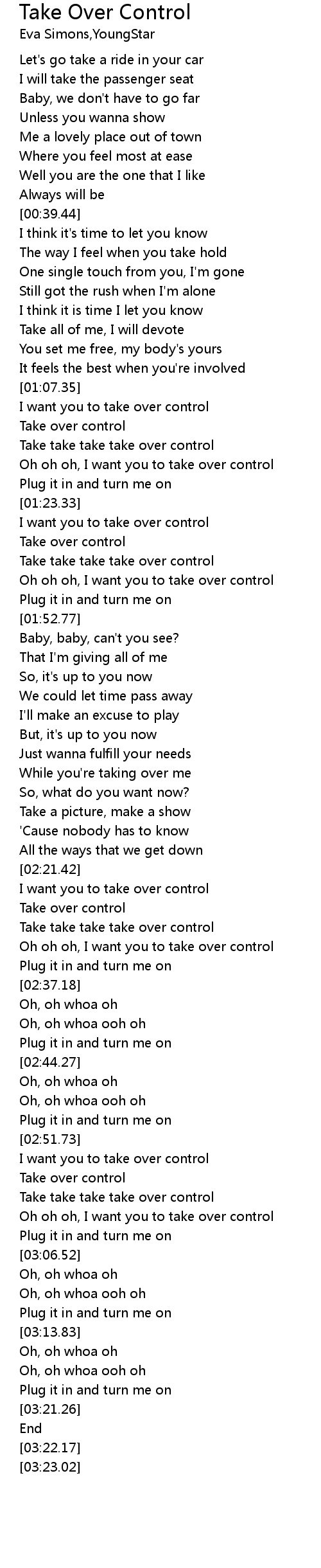 [02:58.92] Oh oh oh, I want you to take over control