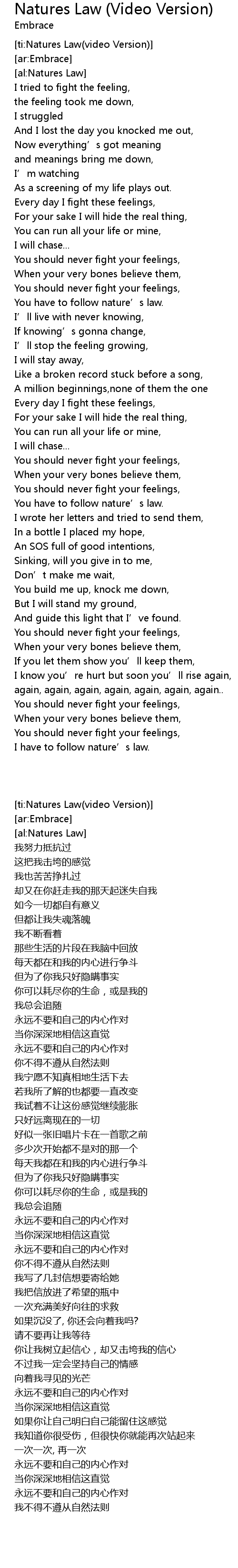 | [ti:Natures Law(video Version)] | |