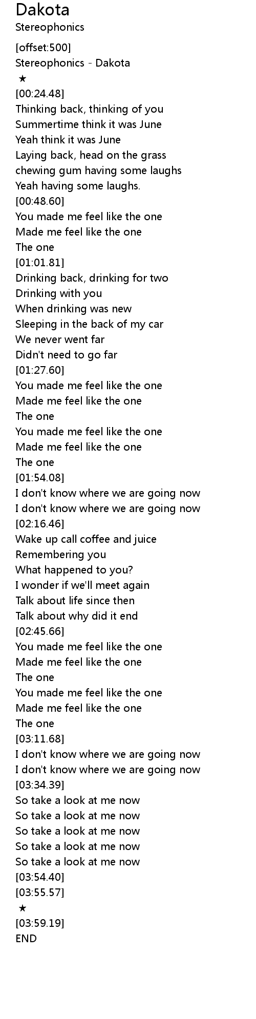 | [00:00.00] | Stereophonics Dakota |