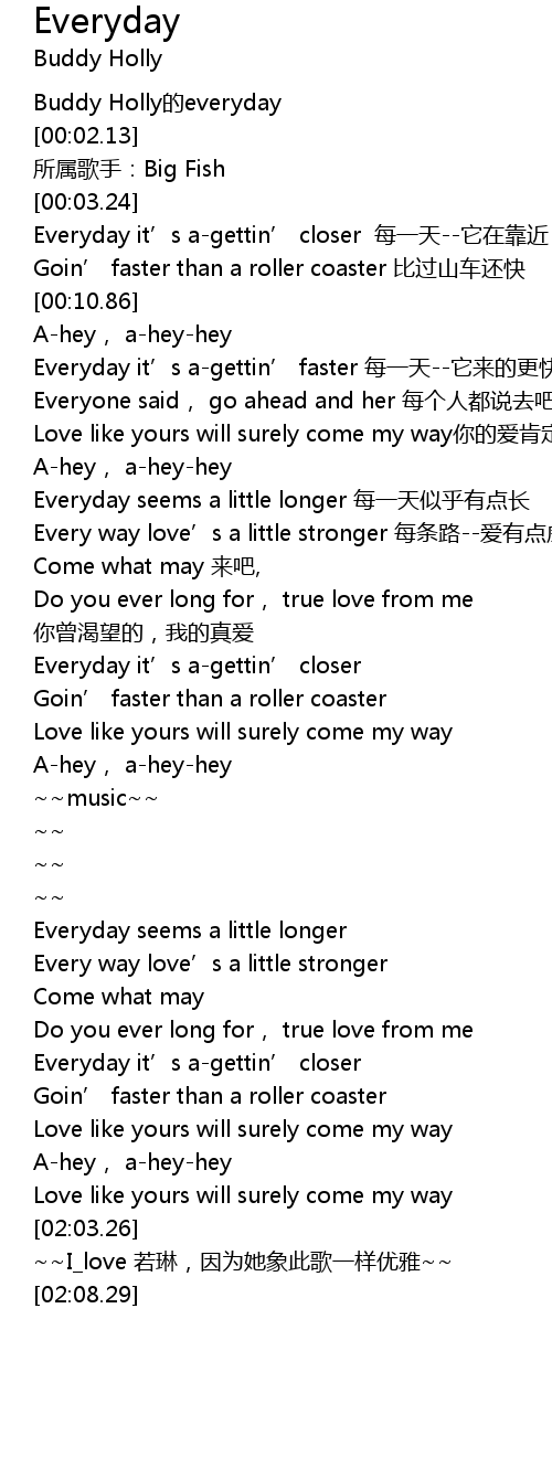 | [00:46.71] | Everyday it’s a-gettin’ closer |