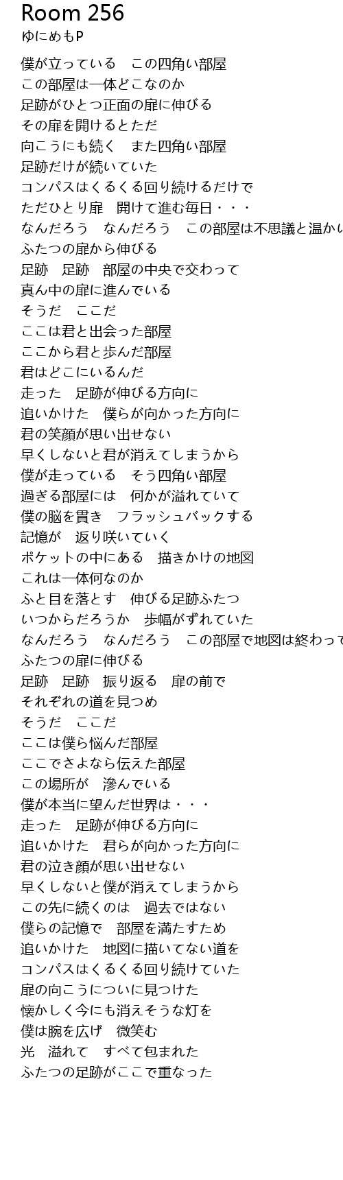 | [02:40.71] | 僕が走っている そう四角い部屋 |
