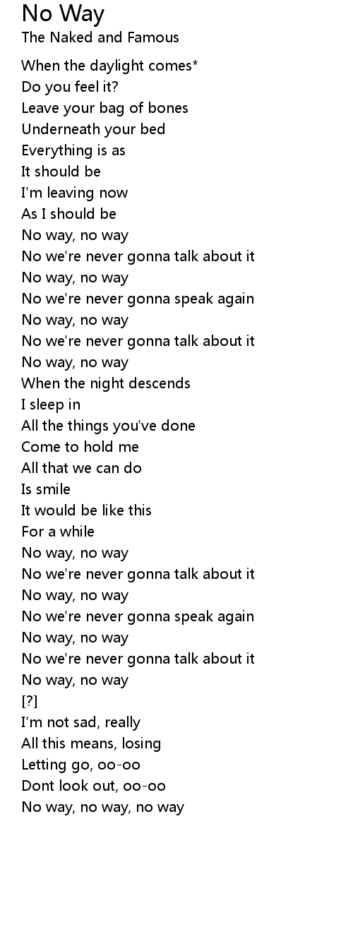 No we're never gonna speak again |