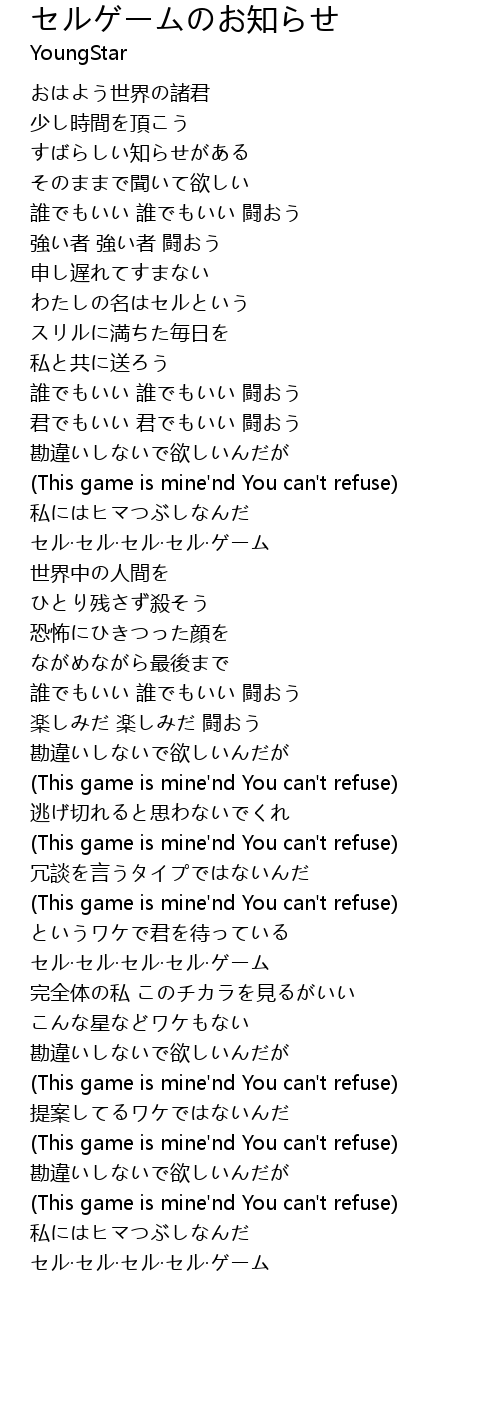 | [02:27.80] | セル·セル·セル·セル·ゲーム |