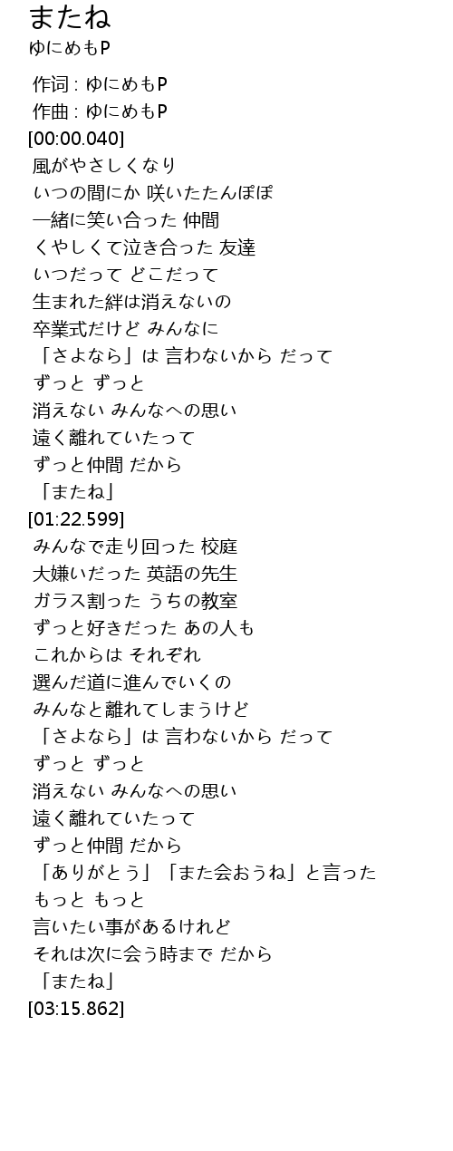 | [02:41.469] | 「ありがとう」「また会おうね」と言った |