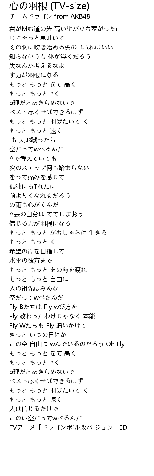 | Song | 心の羽根 (TV-size) |