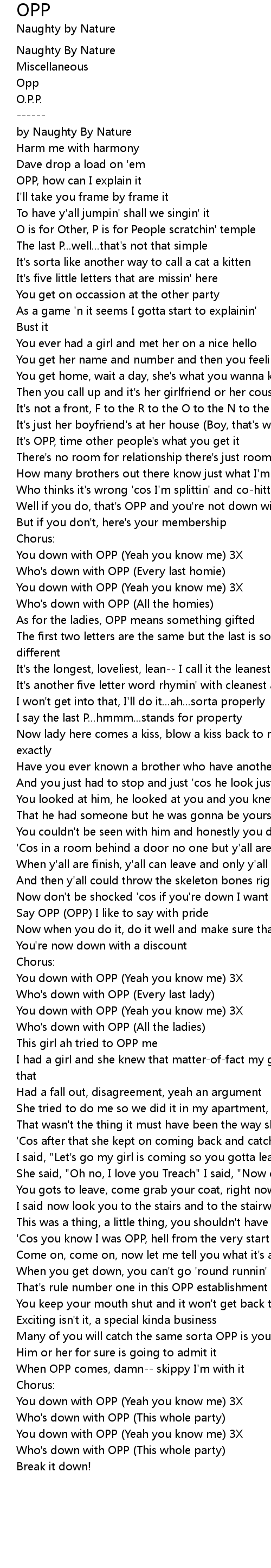Say OPP (OPP) I like to say with pride |