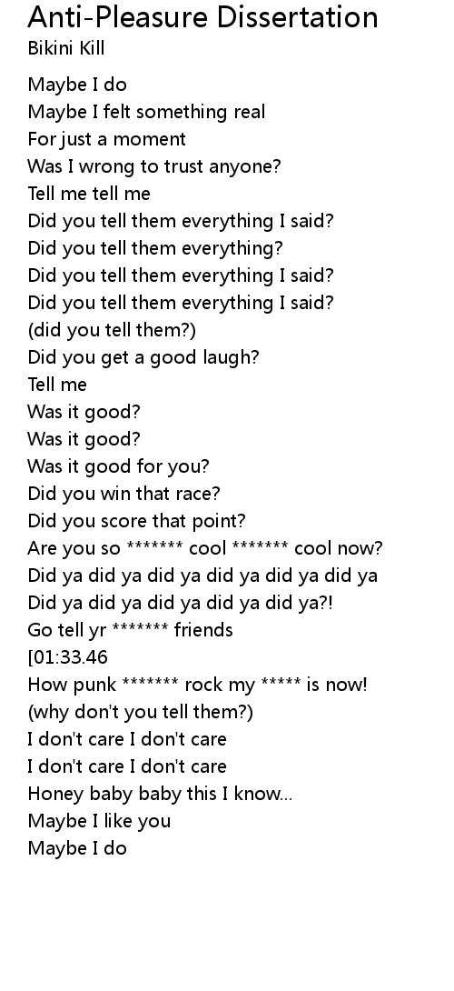 Anti-Pleasure Dissertation Lyrics
