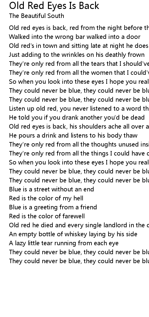 Old red eyes is back, his shoulders ache all over and his brain is sore