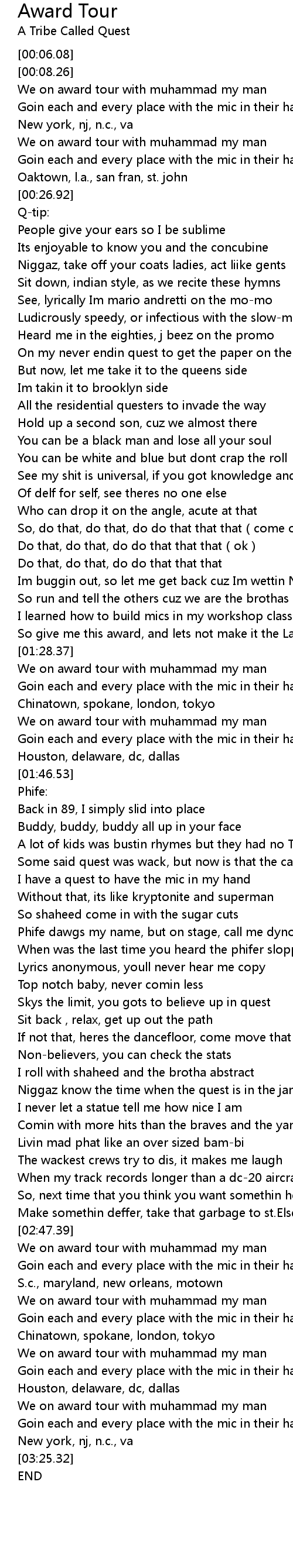 | [03:07.44] | We on award tour with muhammad my man |