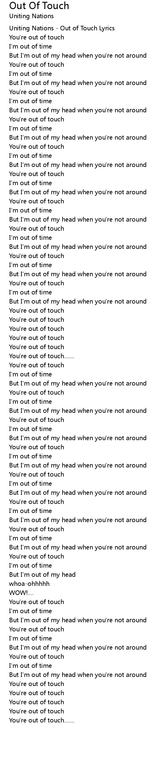 Uniting Nations - Out of Touch Lyrics |