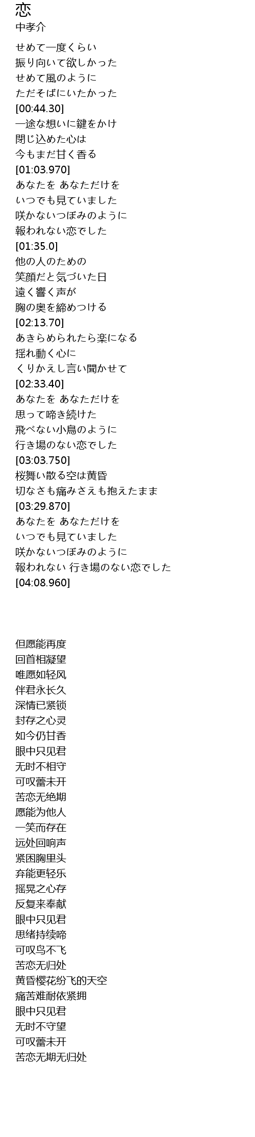 | [03:53.460] | 報われない 行き場のない恋でした |