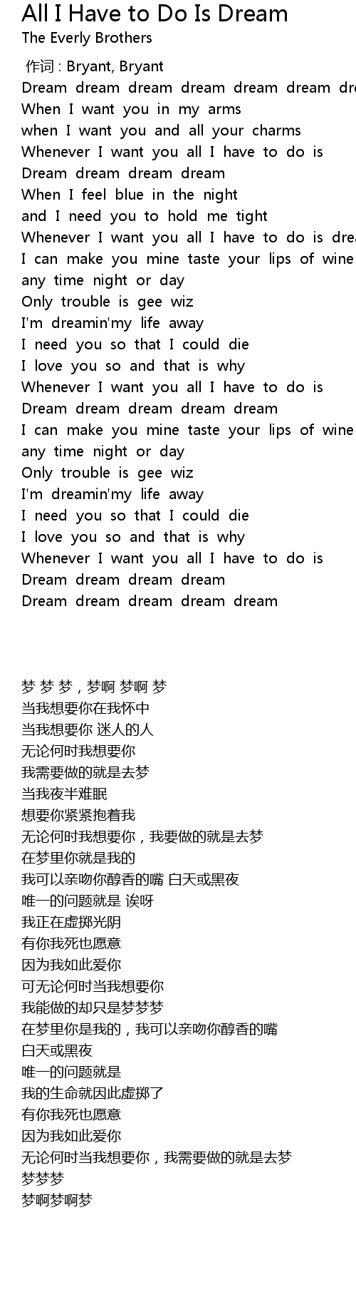 | [02:07.468] | Dream dream dream dream dream |