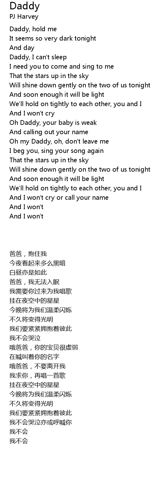 | [01:31.93] | Oh Daddy, your baby is weak |