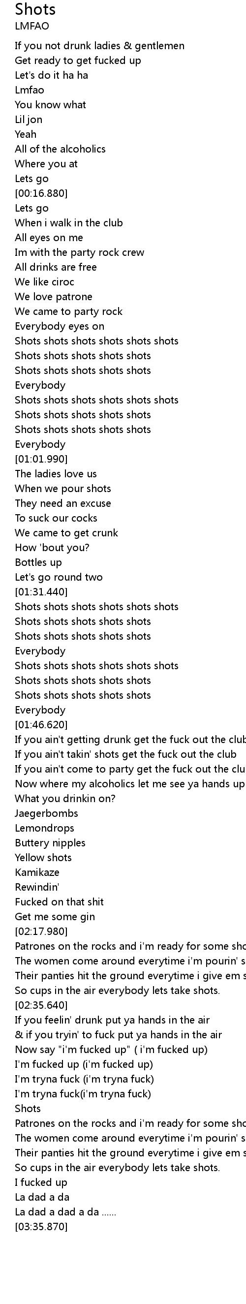 If you ain't takin' shots get the fuck out the club |