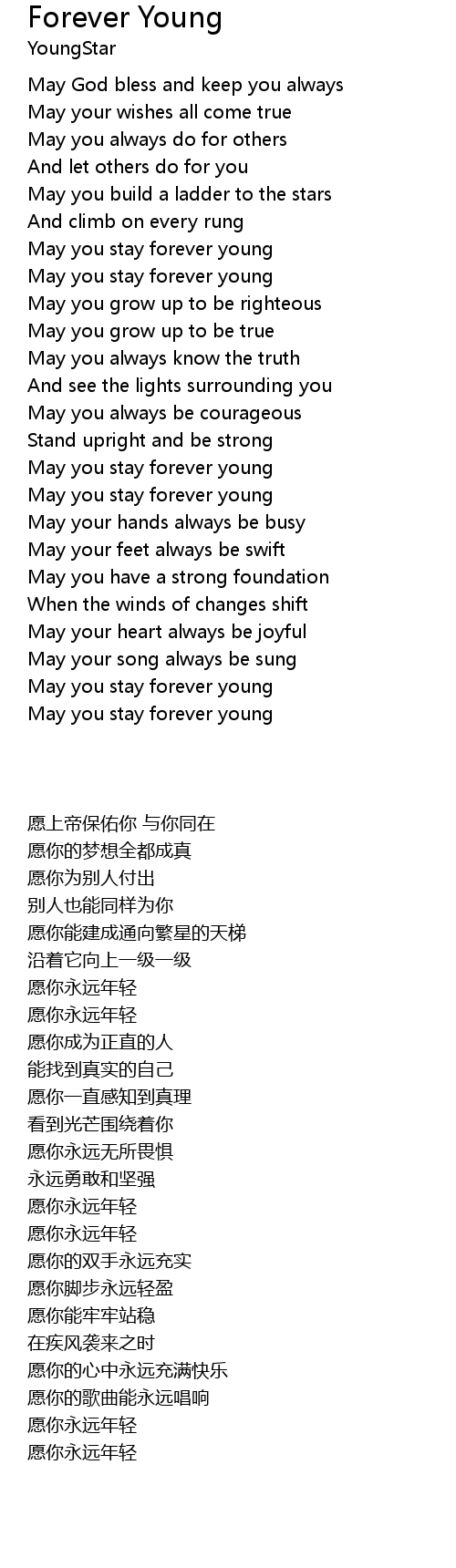 May you stay forever young |