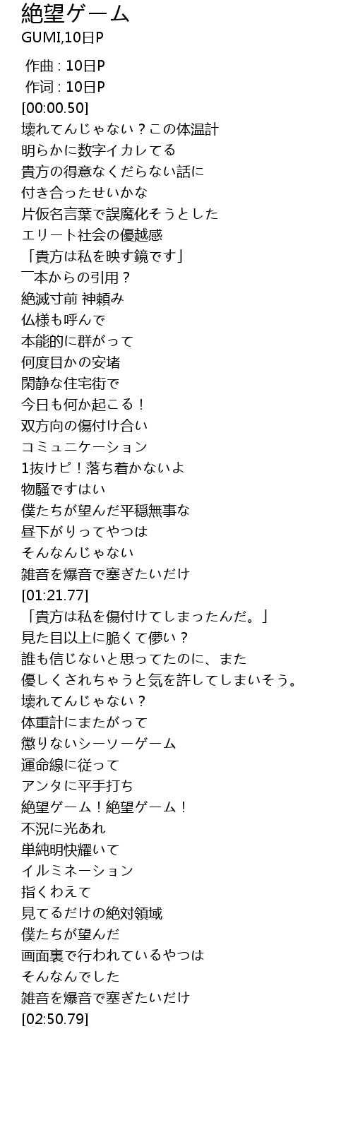 | [02:17.33] | 絶望ゲーム!絶望ゲーム! |