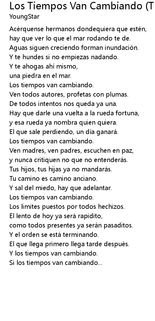 | Song | Los Tiempos Van Cambiando (The Times They Are a-Changin') |